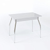 Длина прямоугольной столешницы - 90 см, с помощью механизма “бабочка” ее можно еще немного увеличить - до 1 м 20 см. Изготовлена она из сочетания ЛДСП и МДФ, сверху - закаленное окрашенное стекло. Возможны варианты с кожзамом, фотопечатью. Ноги прямые или гнутые, могут быть сделаны из хромированной стали или массива березы белого, кремового или цвета венге. В любой комбинации служат надежной опорой изделию даже в разложенном виде.